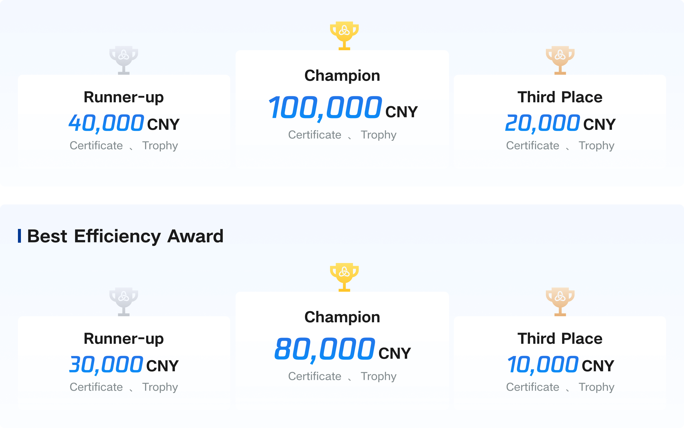The prize money for this track is set as above, with amounts in Chinese Yuan (CNY) and pre-tax.