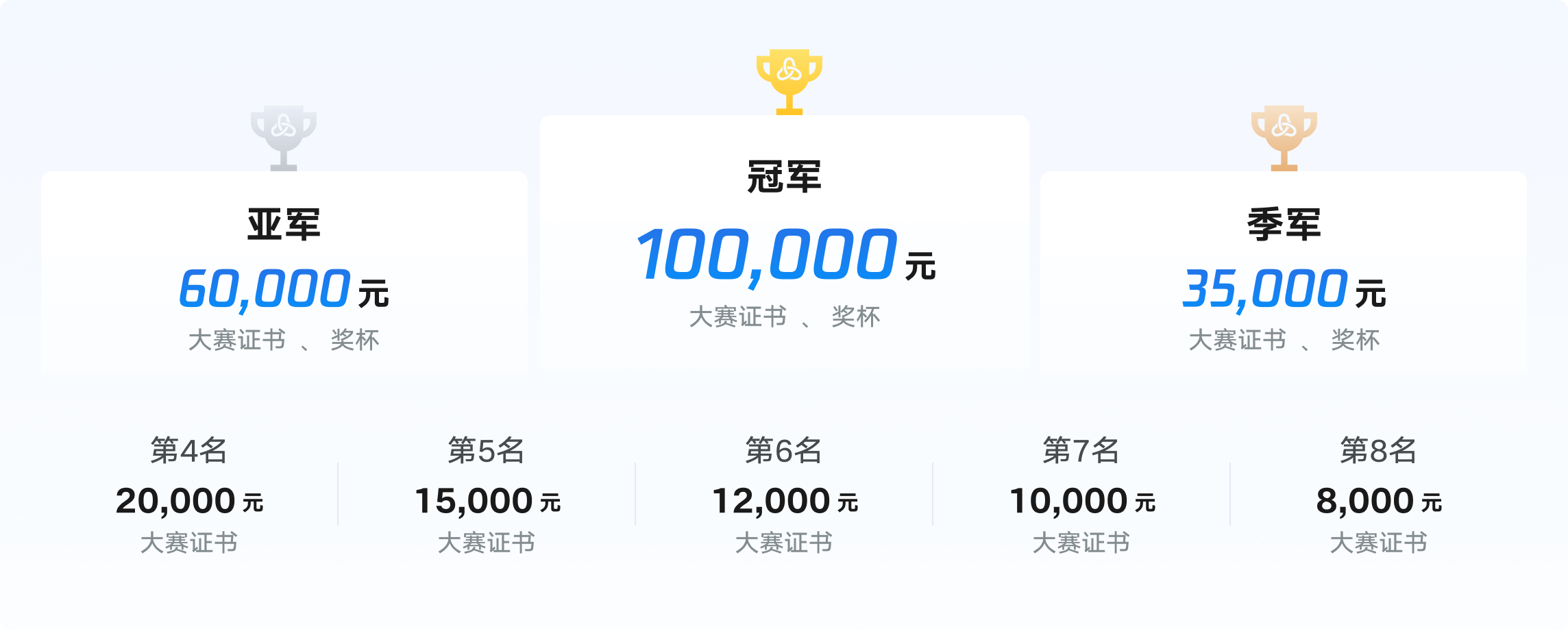 本赛道优胜奖金设置如上。金额单位为人民币(税前)。